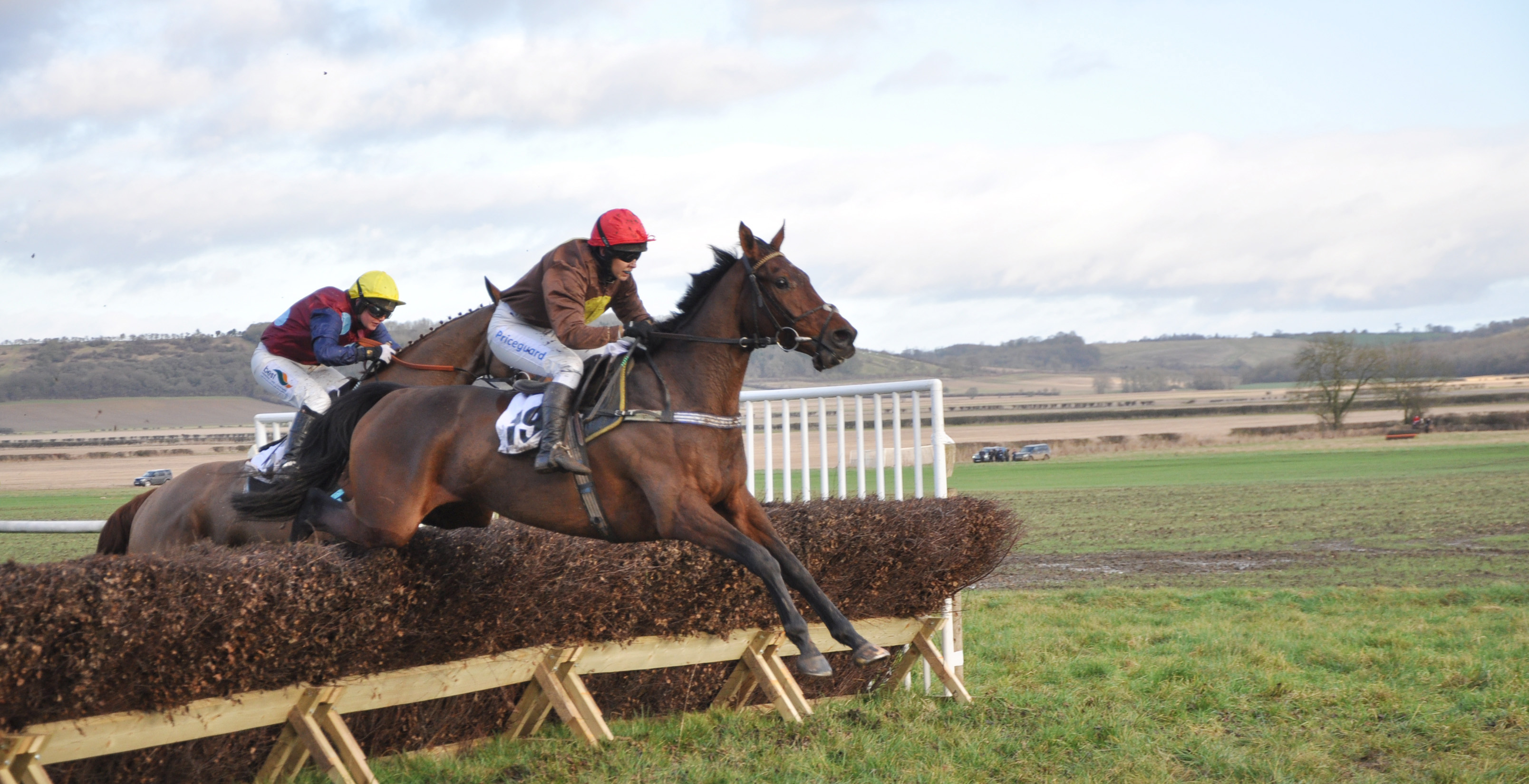 The Dellercheckout (Immy Robinson) leads Haymount (Gina Andrews) over the last at Sheriff Hutton